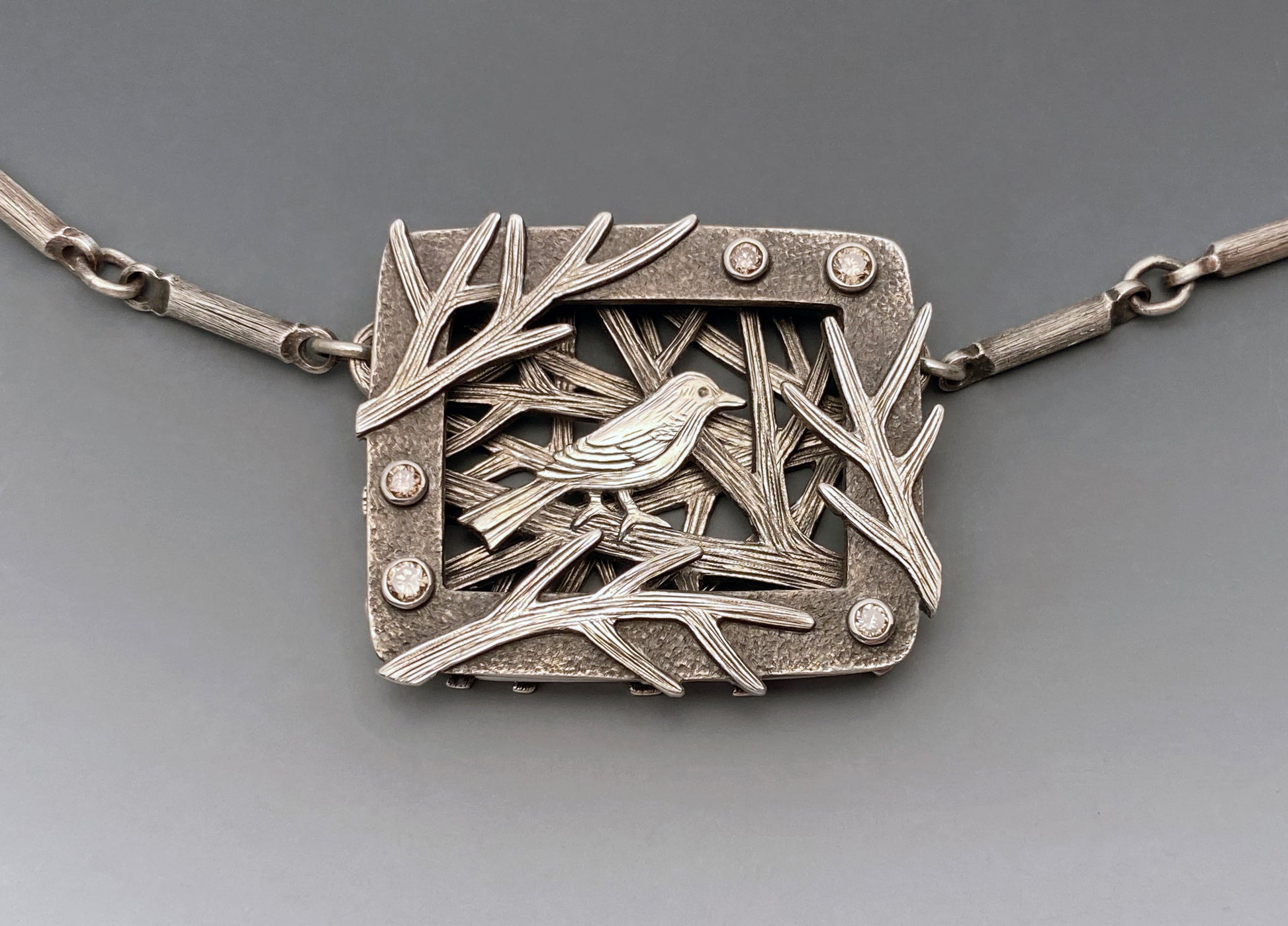 Suzanne is a Colorado resident. She graduated from Colorado State University in 1980 with a degree in printmaking and later worked as a graphic artist, illustrator, fine artist, and technician in art/bronze casting foundries before bringing the many facets of her art background together to begin her jewelry-making career in 1990. She has shown her work in galleries, art festivals and shows. Suzanne is always working on developing and applying new techniques and approaches to creating her signature 3-dimensional jewelry such as designing and fabricating unconventional clasps and closures for her work. Hand fabricated clasps and closures have always been an integral part of her designs, but in the past few years she has intensified her exploration and development of new and interesting ways of joining jewelry elements together. She has also more recently been teaching workshops. That includes further exploring and sharing novel and unconventional approaches to the design, functionality and creation of clasps and closure methods.